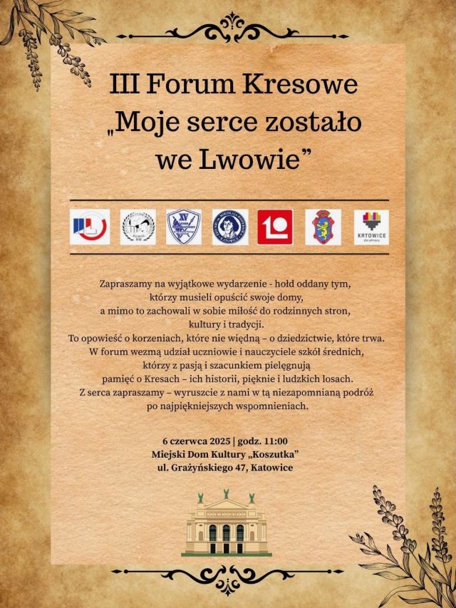 6 czerwca 2025 roku w Miejskim Domu Kultury „Koszutka” w Katowicach odbyło się III Forum Kresowe. W spotkaniu zorganizowanym pod patronatem katowickiego oddziału Towarzystwa Miłośników Lwowa i Kresów Południowo-Wschodnich uczestniczyli uczniowie katowickich szkół, gościli też przedstawiciele katowickich instytucji: Instytutu Pamięci Narodowej, Regionalnego Instytutu Kultury im. Wojciecha Korfantego oraz Biblioteki Śląskiej.