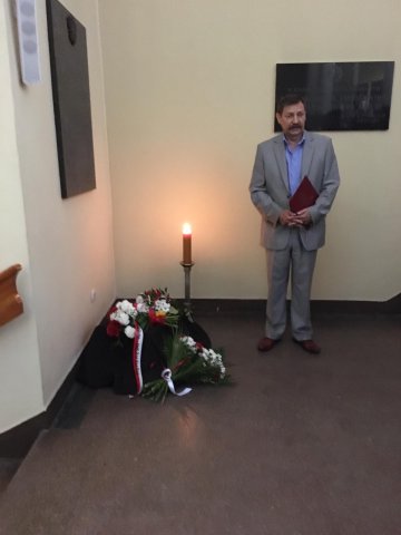 Po zakończonej liturgii, w czasie której Jerzy Głybin aktor Teatru Śląskiego odczytał wiersz Zbigniewa Herberta "Przesłanie Pana Cogito", wraz z księżmi wszyscy udali się pod pamiątkową tablicę poświęconą profesorom, ufundowaną 10 lat temu przez nasz Odział przy dużym udziale wykładowców katowickich uczelni.